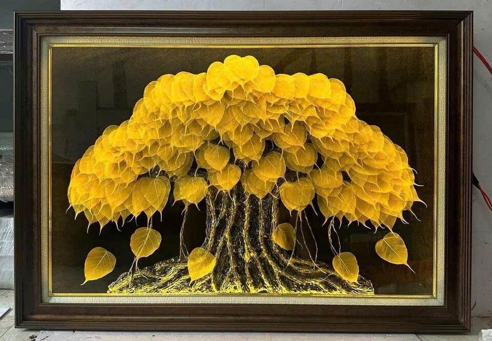 tranh lá bồ đề là tranh được tạo ra từ xương lá bồ đề, biểu tượng của sự an lành trong Phật giáo. Các lá được sắp xếp tỷ mỉ dưới bàn tay nghệ nhân, tạo ra sự hài hòa, tinh tế – biểu tượng của niềm tin. trong Phật giáo không chỉ là một tác phẩm nghệ thuật, mà còn là biểu hiện của sự thiền định, của sự kết nối sâu sắc giữa con người và thiên nhiên. Bức tranh này không chỉ mang lại sự thanh tịnh và yên bình cho không gian sống mà còn là món quà đầy ý nghĩa, gửi gắm lời chúc phúc về sự an lạc và hạnh phúc.